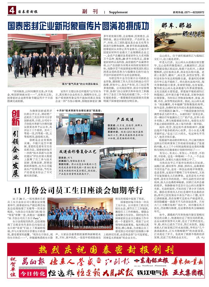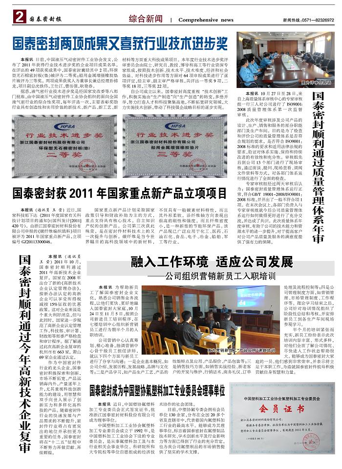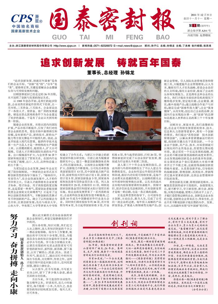 经过近一个月时间紧锣密鼓的筹备,公司企业报《yl7703永利集团密封报》创刊号于2011年12月6日正式出版发行。