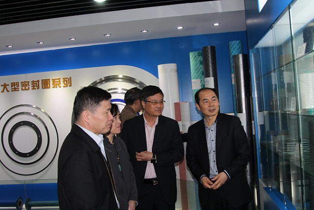 (yl7703永利集团密封公司领导陪同专委会秘书处领导参观产品陈列厅)